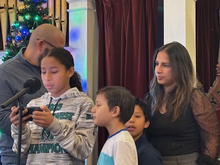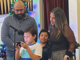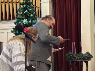 November 30, 2025: Rashid, Alysia and Elora Haneef helping us start the beginning of Advent lighting the first advent candle, the Candle of Hope.